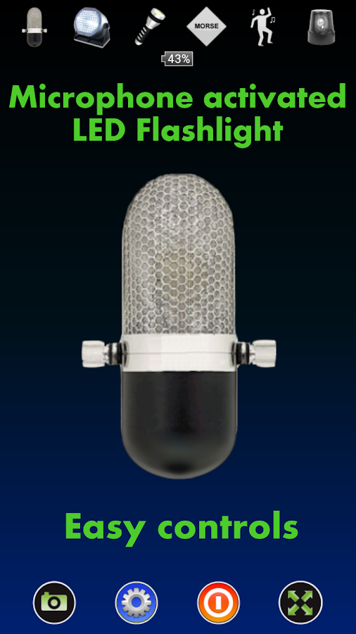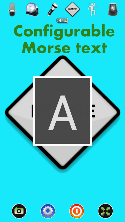 La aplicación tiene muchos modos como; Luz del disco, linterna, luz estroboscópica, Morse, Shake it-policía, luces y el texto de marquesina.