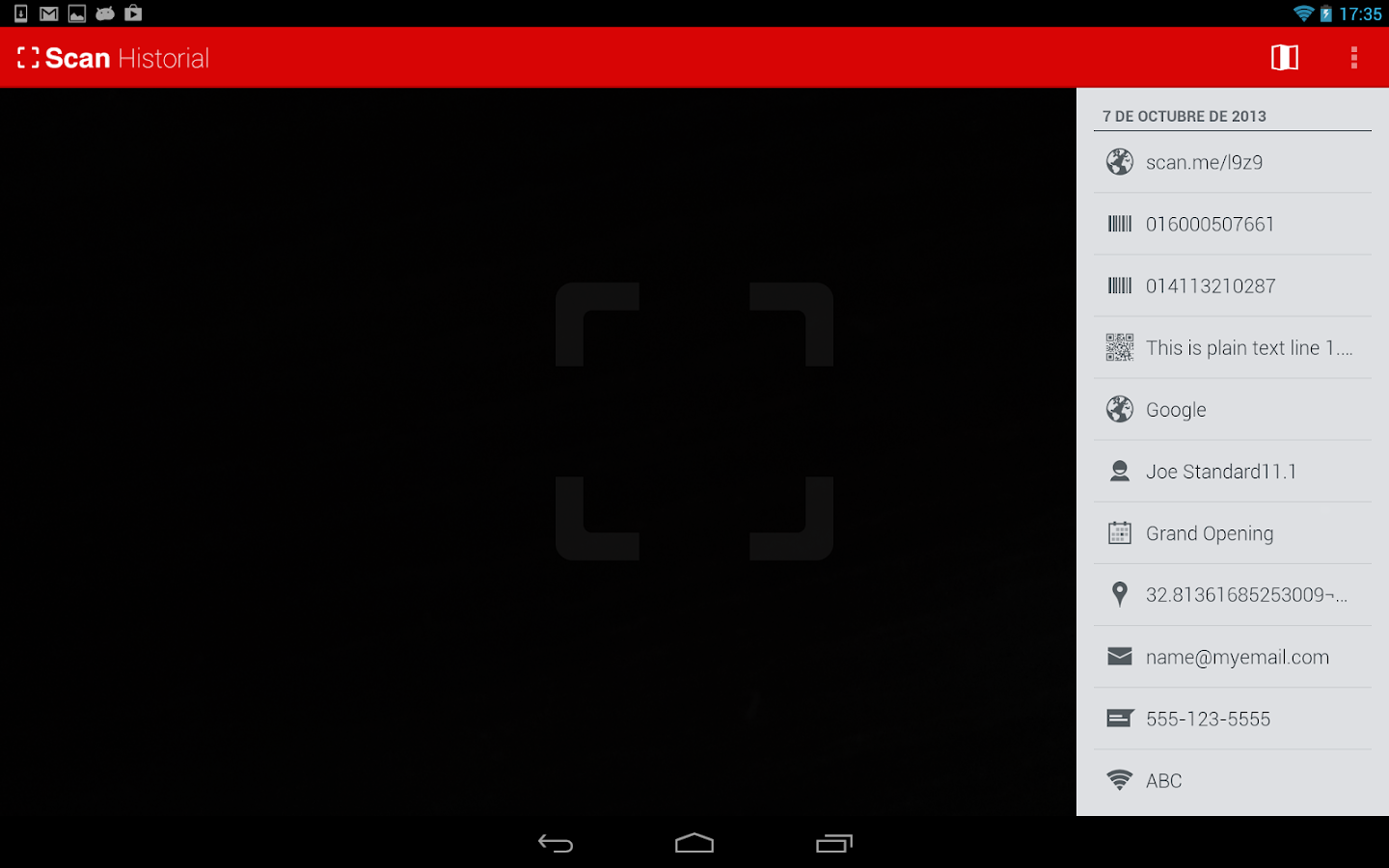 Para escanear un código QR o de barras, simplemente abra la app, apunte la cámara al código, ¡y eso es todo! No hay necesidad de tomar la foto ni presionar botones. QR Code Reader automáticamente reconoce el código al que apunta su cámara.