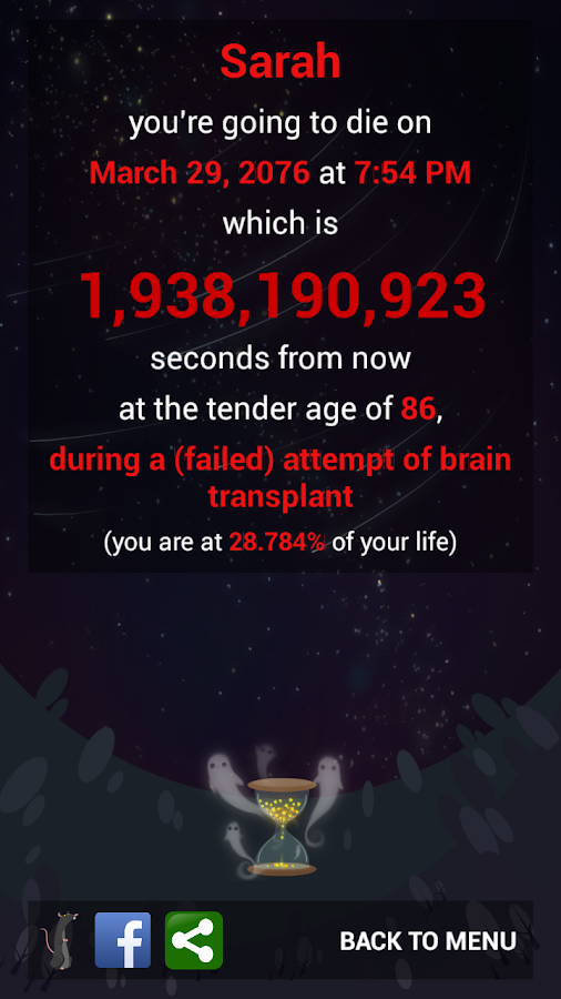 Aunque sea un simple juego, el Game of Death calcula la fecha y la razón de tu muerte en base a las estadística sobre la expectativa de vida media y a las respuestas dadas.