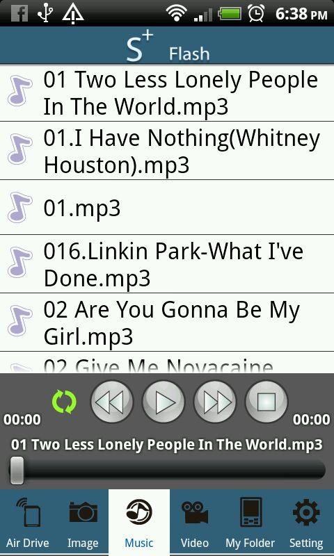 5. Explore todos los archivos de audio desde el Air Drive y seleccione un archivo único para reproducir el contenido de audio.
