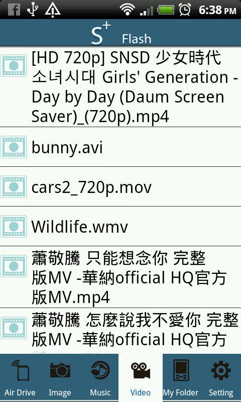 6. Explore todos los archivos de vídeo desde el Air Drive y seleccione un archivo único para reproducir el contenido de vídeo.
