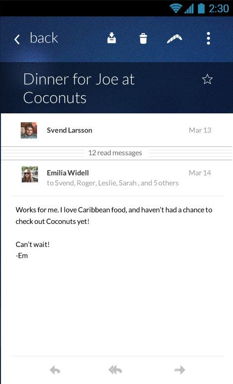 archivar, a la izquierda para la función snooze y otras opciones) y